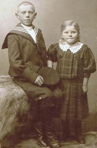 ![]() Christian Rathkjen i matrostøj og Lillesøster Marie Rathkjen anno 1910 |