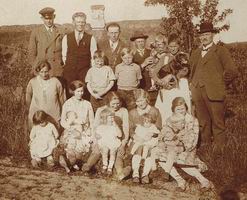 ![]() Mødregruppen Bagerst: Hans (Annas 1. mand), Edvard( Andrea), Karl (Ebba) Christian Rathkjen med Edith, Johanne Kristine Knudsen med Smut, Henrik Jacobsen Far til Ebba og Anna. Drengene i midten Ukendte Forrest Anna med Else, Ebba med Anne, Ukendt, Andrea med lise, Maren Rathkjen med Villy anno maj 1933 |